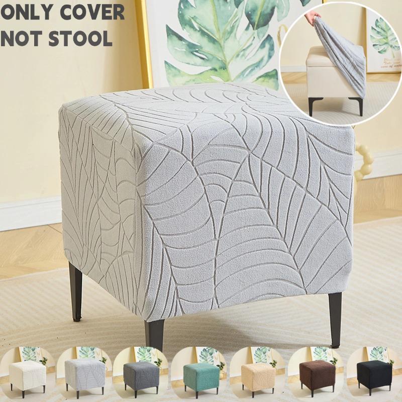 1Pc Leaves Jacquard Ottoman Cover Elastic Footrest Slipcovers Anti-Slip Removable Footstool Protector Cover For Living Room