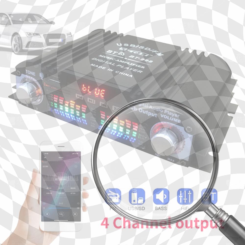 1600W Peak Power Digital 4 Channel Audio Amplifier FM Radio USB Bluetooth Karaoke Player HiFi Sound FM USB Remote Control