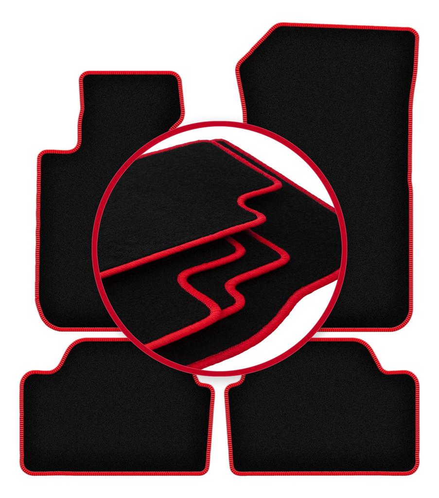 Velours-Fußmatten mit rotem Rand für: BMW 1 F21 Schrägheck (2011-2019)