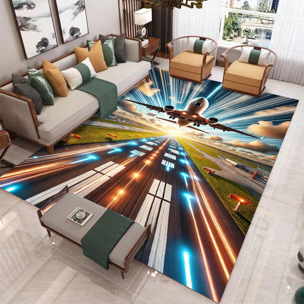 3D Aviation Theme Living Room Carpet Non Slip Indoor Rug Home Decor Mat Dirt Resistant Foot Mat for Bedroom Entrance