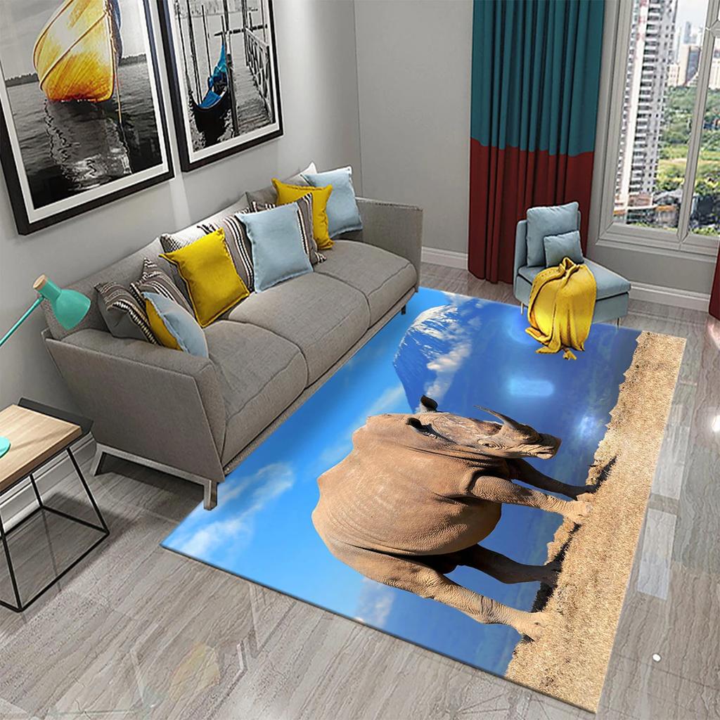 3D Rhino Carpet for Bedroom Living Room Decoration Area Mats Outdoor Rug Play Mats Kitchen Bathroom Door Entrance Non-slip Rugs