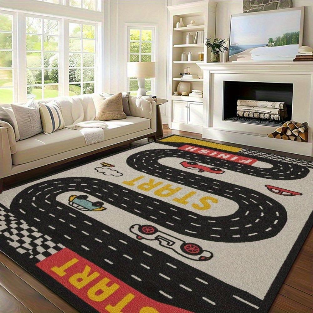 Kinder Rennstrecken Teppich Matte Teppich Cartoon Auto Design Heimdekoration für Wohnzimmer Spielzimmer mit START ZIEL Linie Heimteppiche