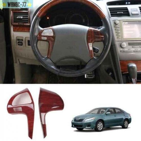 Wood Grain Car Steering Wheel Button Cover Trim For Toyota Camry 2007-2011