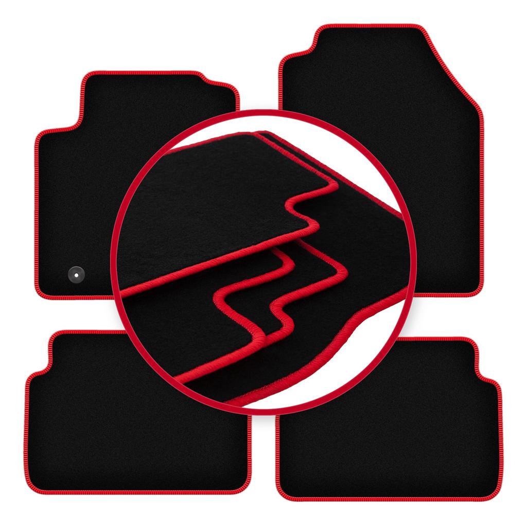Velours-Fußmatten mit rotem Rand für: Ford Focus MK1 FL Schrägheck, Limousine, Kombi (2001-2004)