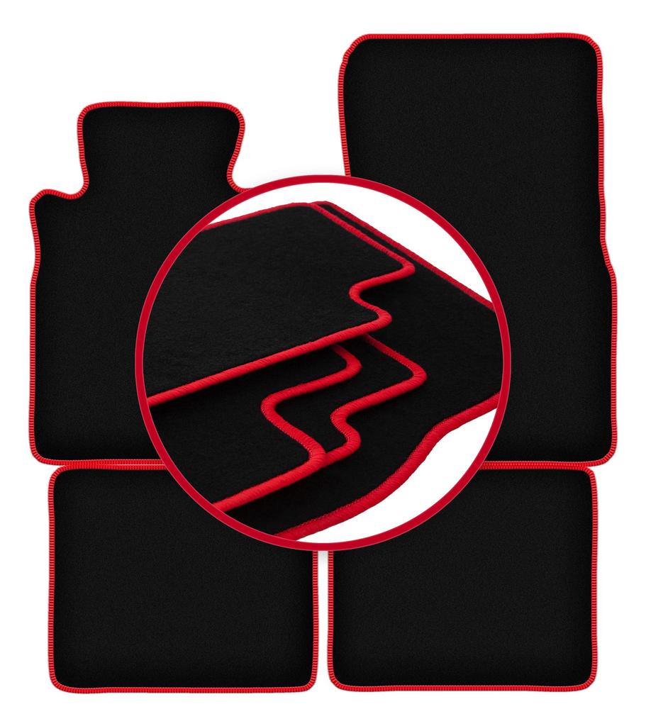 Velours-Fußmatten mit rotem Rand für: Mercedes SE W126 Limousine (1979-1991)