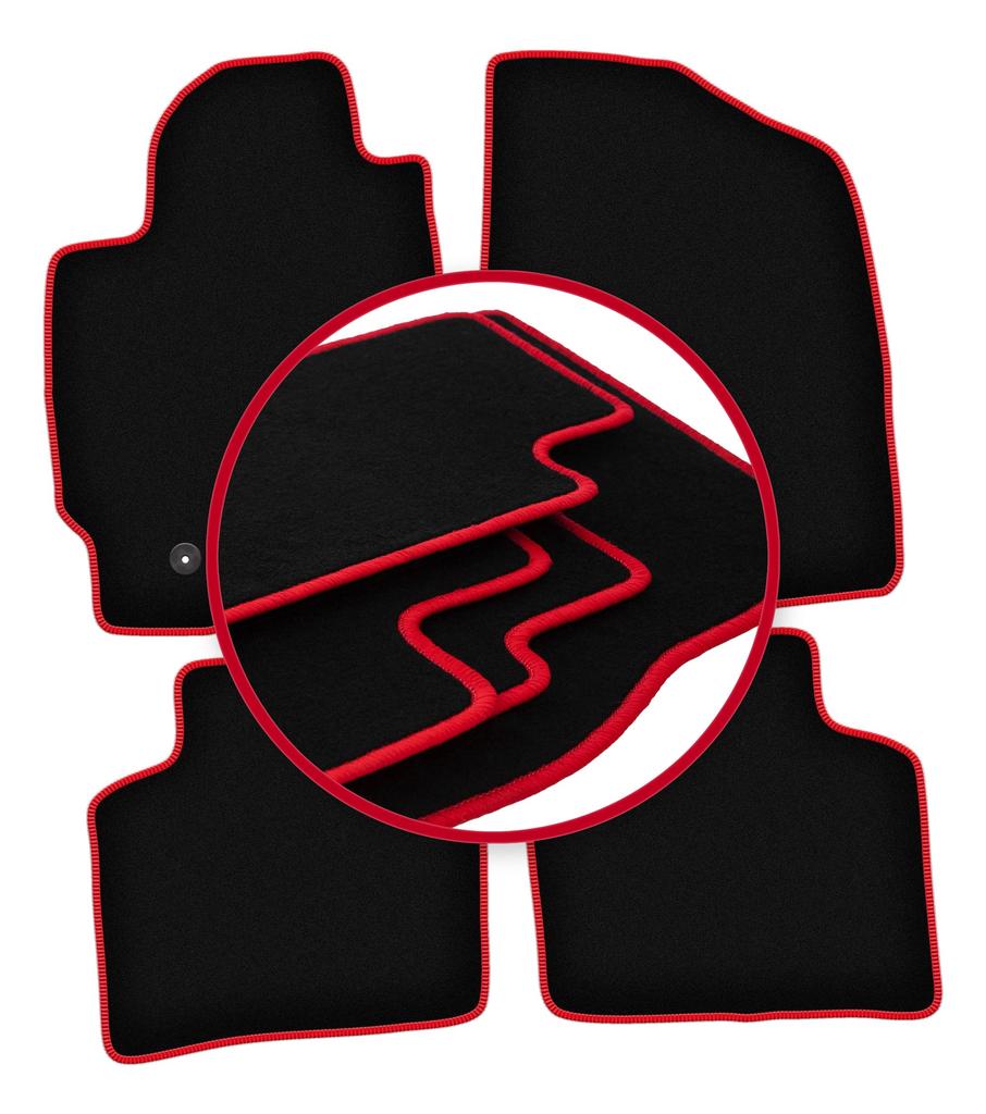 Velours-Fußmatten mit rotem Rand für: Toyota Prius II Schrägheck (2003-2010)