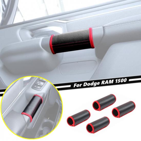 For Dodge RAM 1500 19-25 Black+Red Inner Door Handle Protective Leather Case 4P