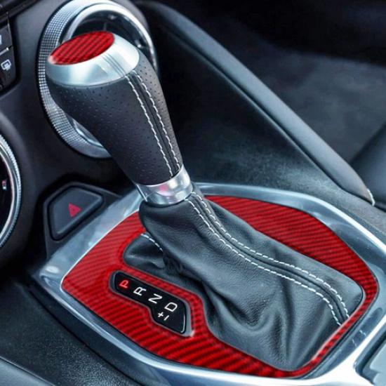 Red Carbon Fiber Car Automatic Gear Shift Knob Panel Cover For Camaro 16-19