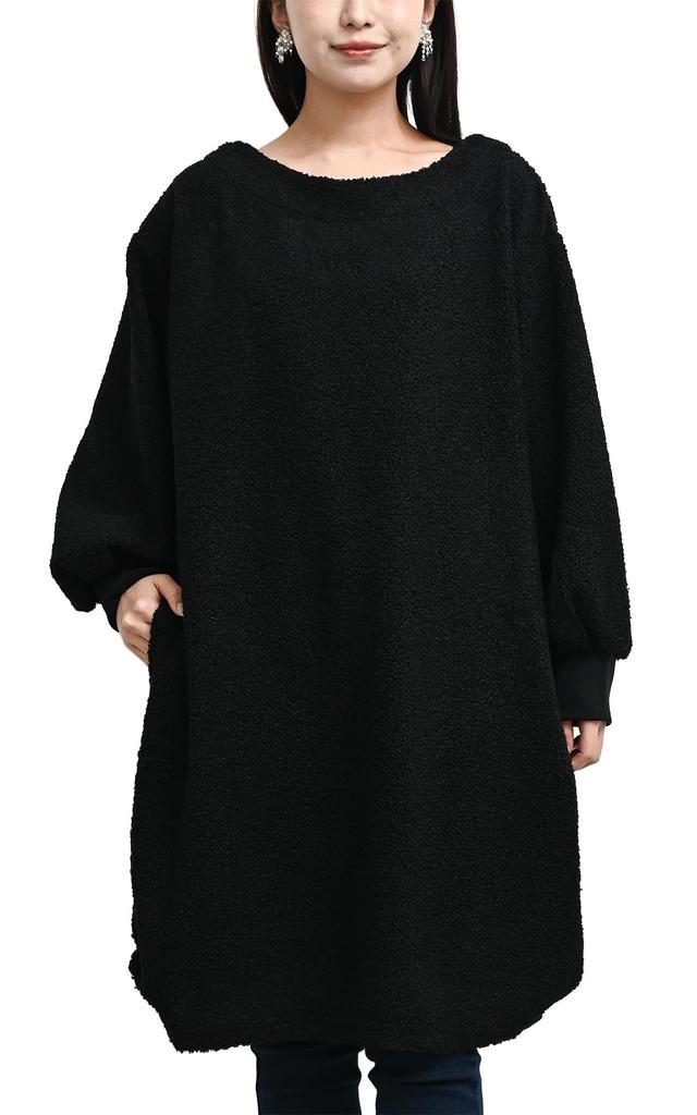 [Staff comment on wearing this item] Height: 156cm / Usual size: LL. The length of the dress is about knee-length for my height, and the sleeves are the perfect length for me. The loose fit allows for both figure coverage and a relaxed feel. The fabric is a boucle material that gives off a warm feeling just by looking at it. It will also be useful as a warm item for when you're at home! The stretchy fabric makes it easy to put on and take off. This is a boucle item that you'll want to have in your wardrobe for the cold season!