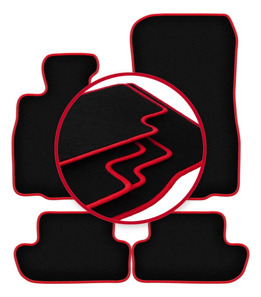 Velours-Fußmatten mit rotem Rand für: BMW 6 F12 Cabrio (2011-2018)