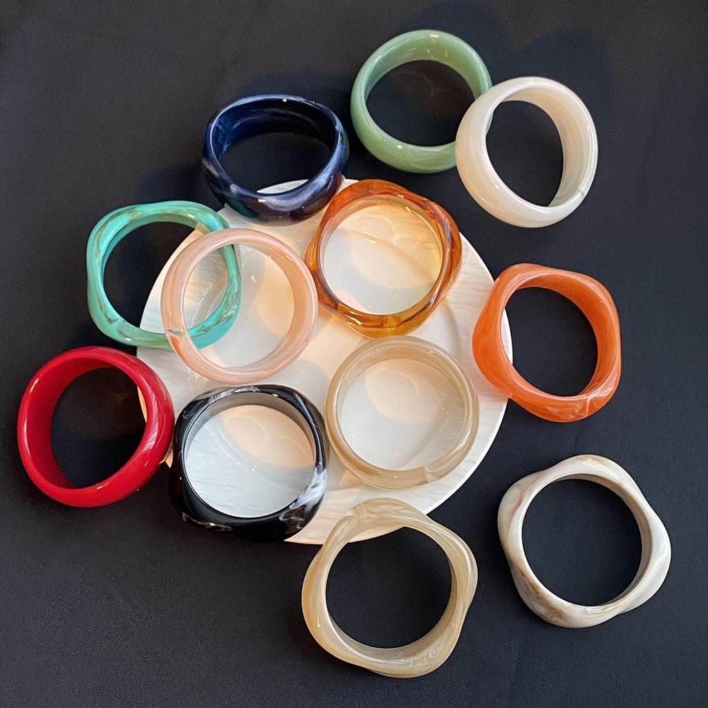 Retro Special-Shaped Wide Square Acrylic Multi-Color Bracelet Multi-Color Exaggerated Design Sense Niche Jewelry