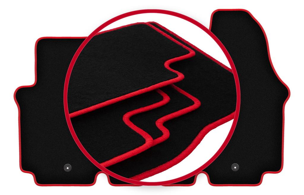 Velours-Fußmatten mit rotem Rand für: Renault Trafic II Kastenwagen (2001-2014)