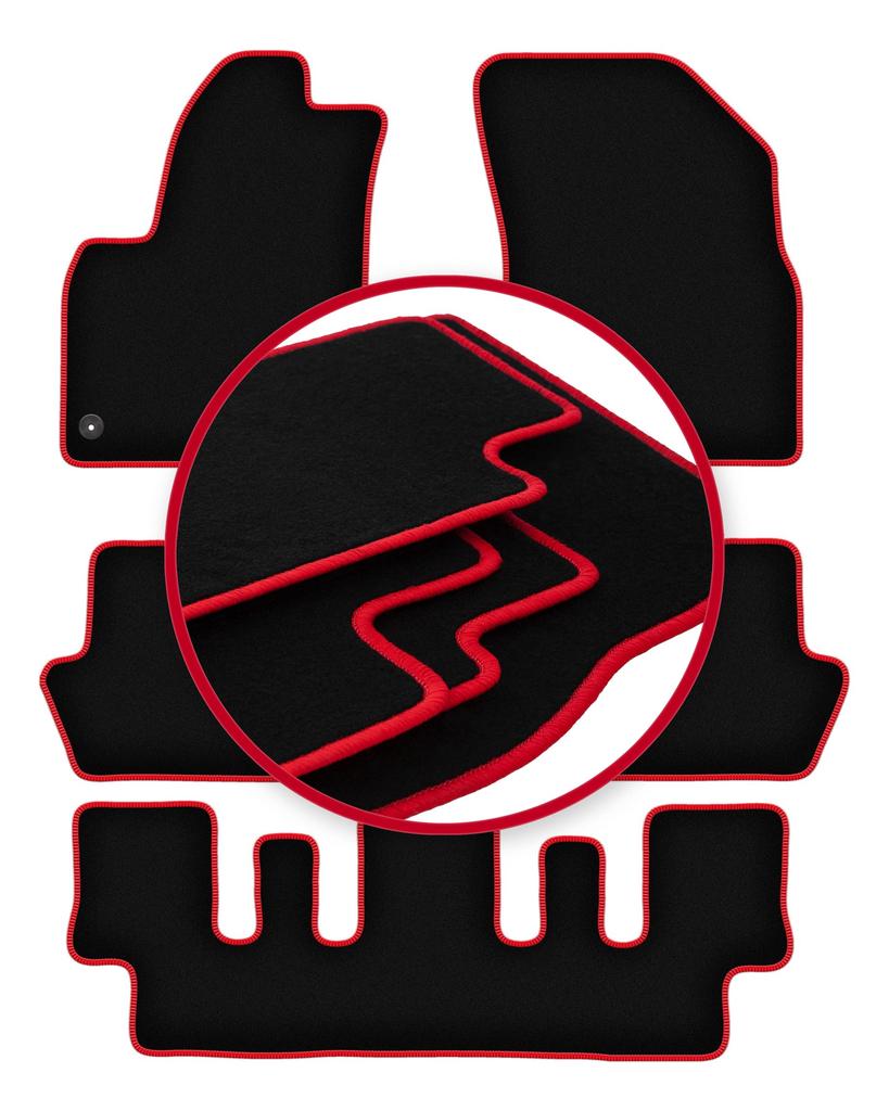 Velours-Fußmatten mit rotem Rand für: Citroen C4 Picasso I 7 Sitze (2006-2013)