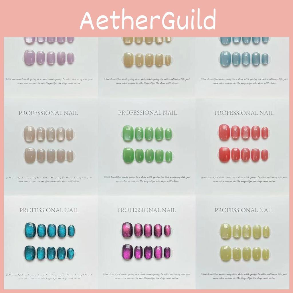 Buntes Laser Katzenaugen Nageldesign Handgefertigt Kurzer Stil XS/S/M Größen