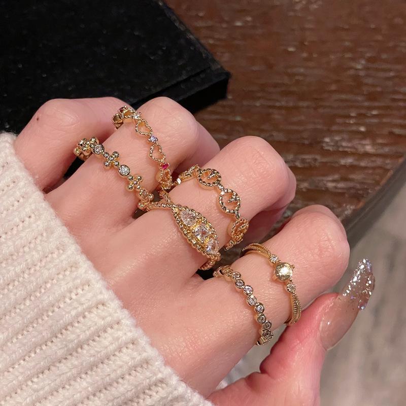 Explosive Fashion Temperament Diamond Opening Ring Niche Design Medieval French High-End Accessories Ring Women
