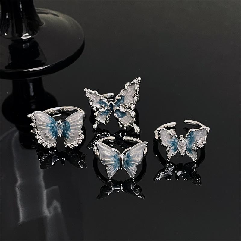 Schmetterlingstanz-Serie Farbverlauf Blaues Licht Luxus Hoher Sinn Offener Ring Schmetterling Nischendesign Persönlichkeit Faltring Frauen