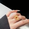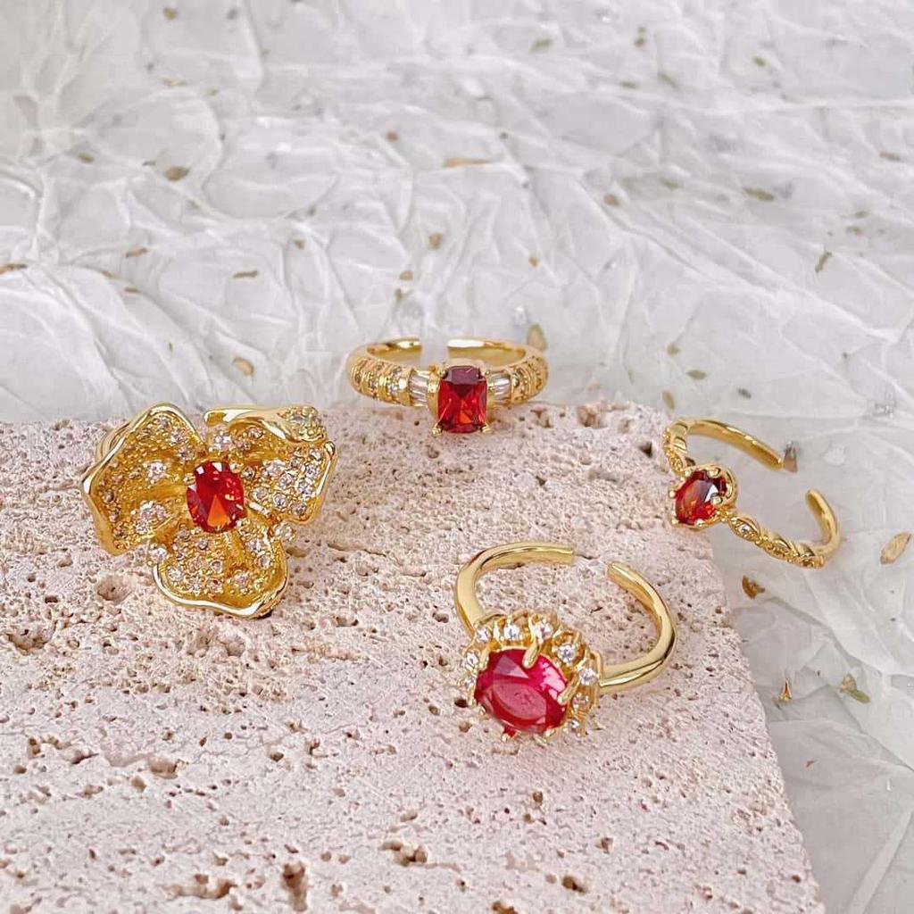 Rotfarbiger Schatz, Goldener Diamantenbesetzter Blumen-Öffnungsring, Leichter Luxus Retro Nischendesign, Personalisierter High-End-Ring Frau