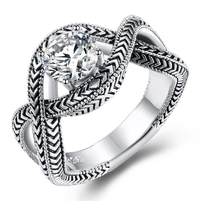 8 Character Retro Pattern Round Zircon Ring, Ring, Ring