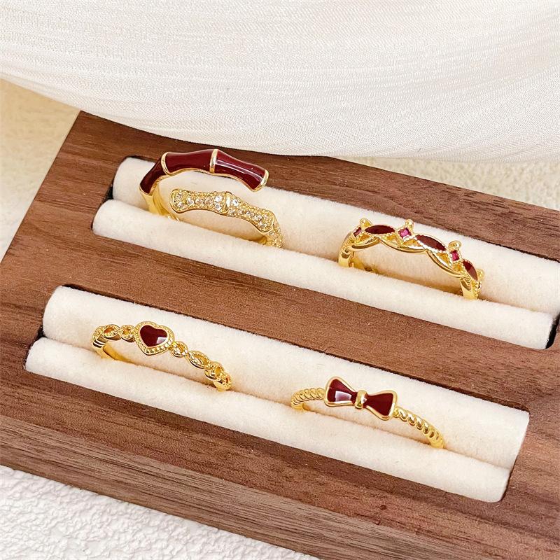 Angola Red Medieval Court Open Ring Retro Enamel Light Luxury Personality Adjustable Stacked Index Finger Ring