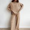 2023 Herbst Europäisches & Amerikanisches Einfarbiges Lockeres Saumschlitz Strickwaren Zweiteiliges Set für Damen