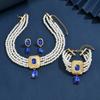 Temperament Leichter Luxus Quadratische Voll Diamant Wassertropfen Halskette Mehrschichtige Anti-Perlen Halskette Ohrringe Armband Dreiteiliges Set