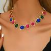 Luxury Full Diamond Geometric Oval Color Crystal Neck Chain Earrings Rhinestone Necklace Fashion Exaggerated Bundle Necklace