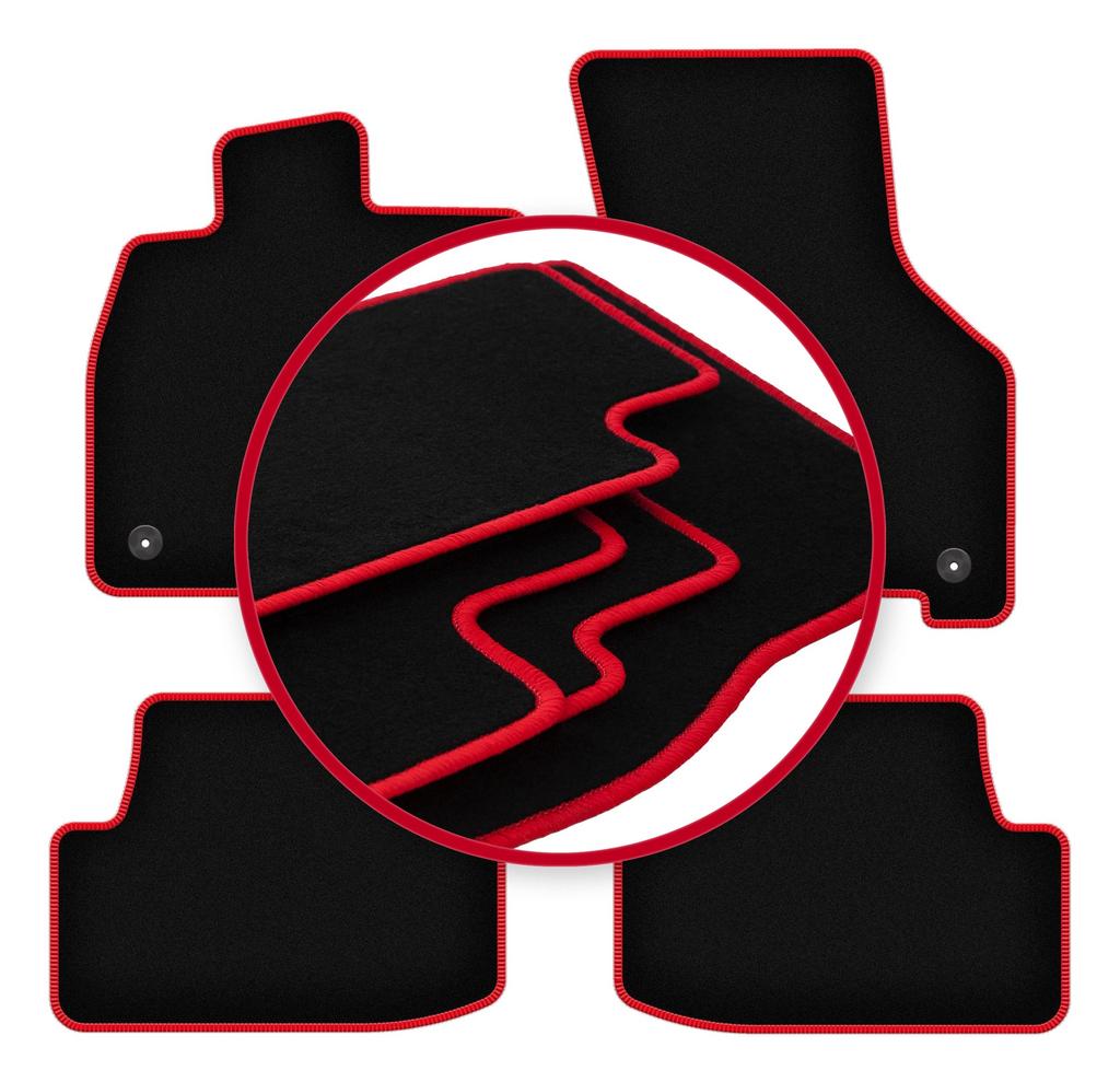 Velours-Fußmatten mit rotem Rand für: Skoda Octavia IV E-Tec Limousine, Kombi, Liftback (2020-)