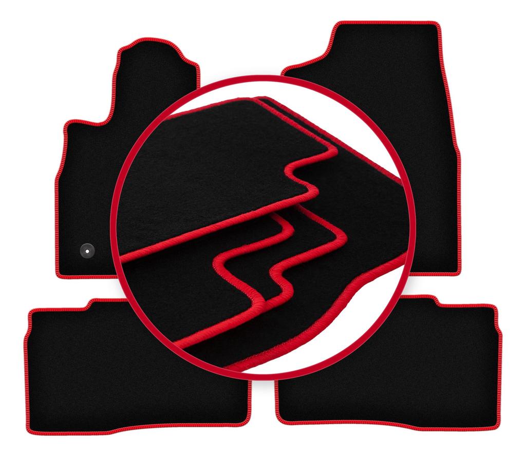 Velours-Fußmatten mit rotem Rand für: Ford Explorer MK6 ST-Line Pickup (2019-)
