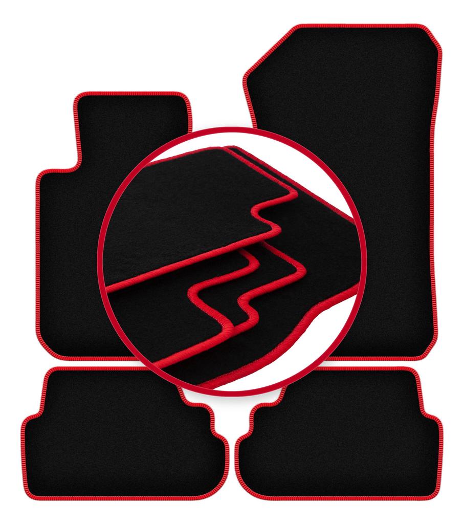 Velours-Fußmatten mit rotem Rand für: BMW 1 E81 Schrägheck (2007-2012)