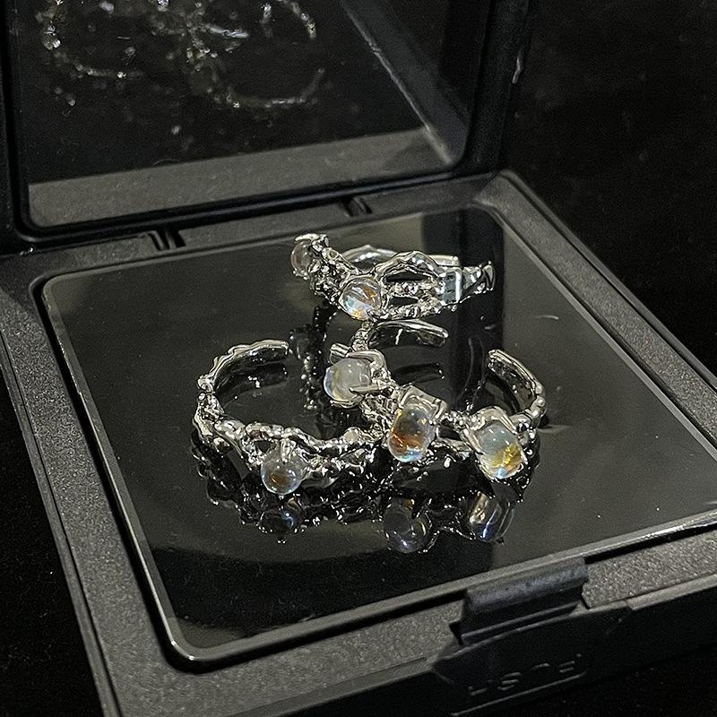 Moonstone Niche Design French Irregular Opal Ring Female Gemstone High-End Cold Wind Open Ring