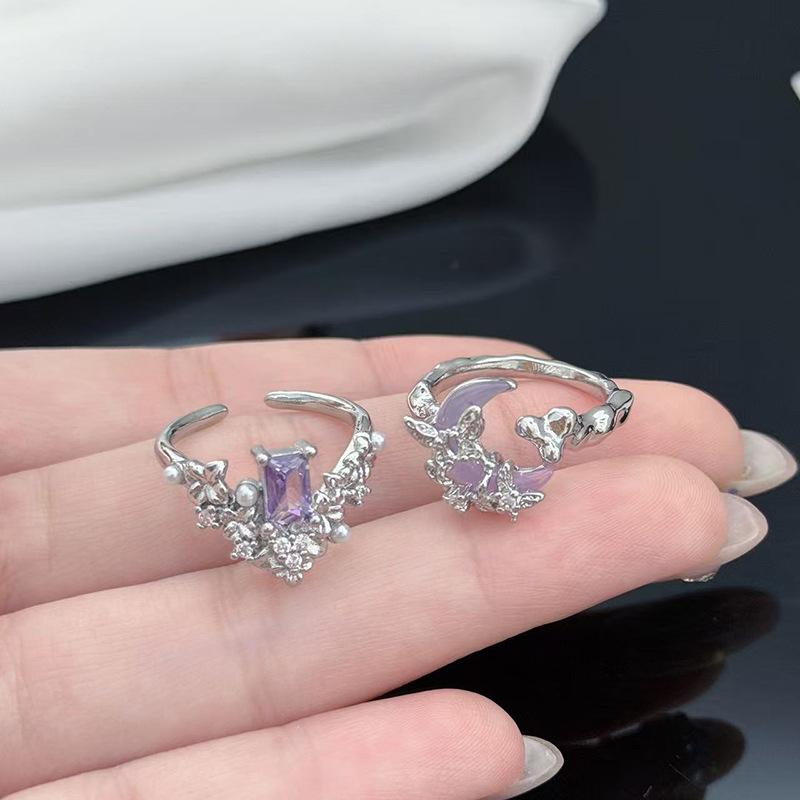 Sweet And Cool Purple Moon Flower Opening Ring Fashion High-End Niche Design Exquisite Light Luxury Ring Woman