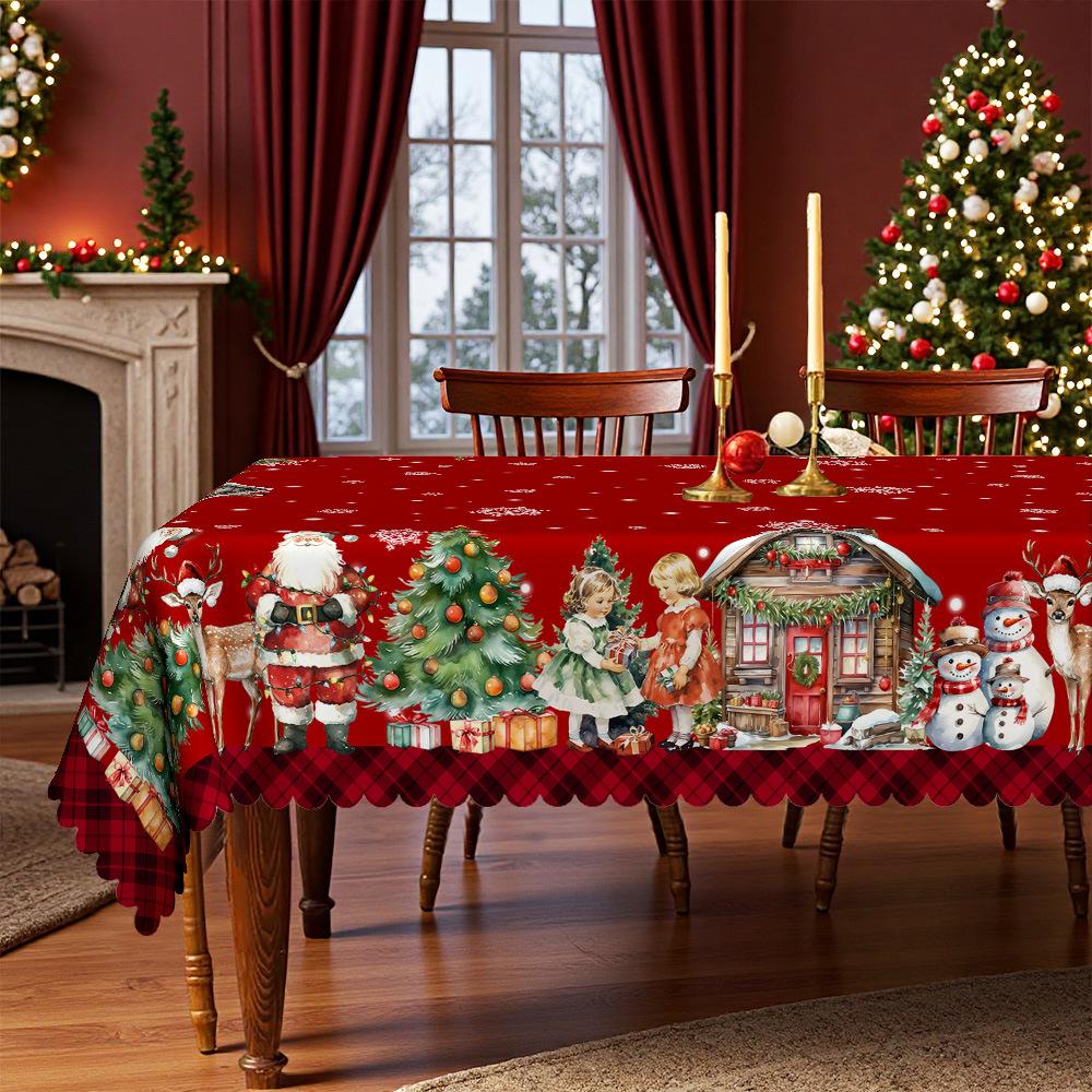 Weihnachtliches rundes Tischtuch Santa Rentier Schneemann Cartoon Mädchen Muster Tischdecke, Tischdekoration