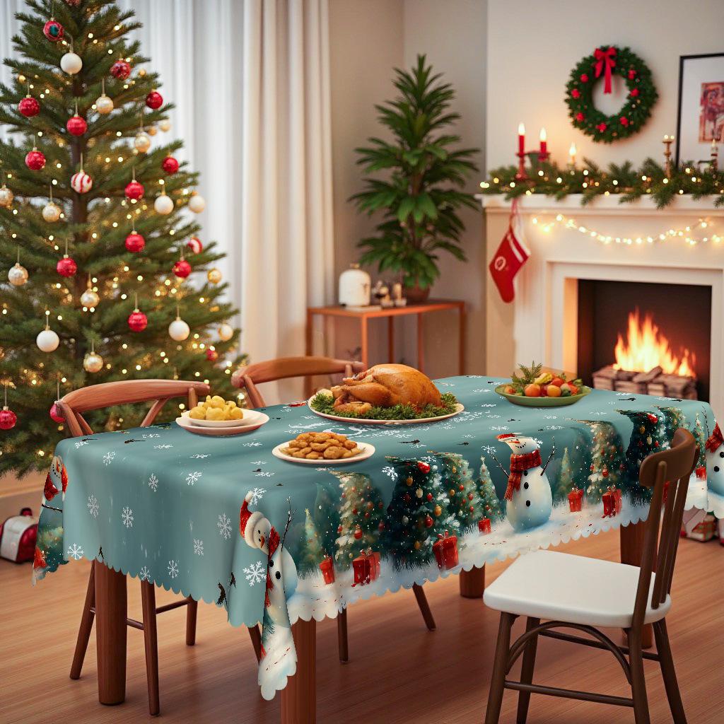 Christmas Tablecloth, Santa Snowman Christmas Tree Gift Waterproof Washable, Rectangular/Round Table Cloth
