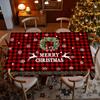 Red Black Checked Christmas Tablecloth, Snowflake Reindeer Merry Christmas Print, Rectangular Table Cloth