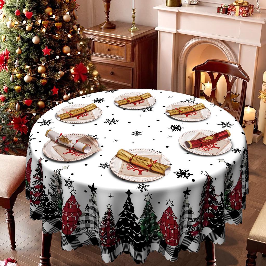 Christmas Themed Tablecloth, Waterproof And Oil-Proof Leave-In, Plaid Christmas Tree, European Retro, Household Round Tablecloth