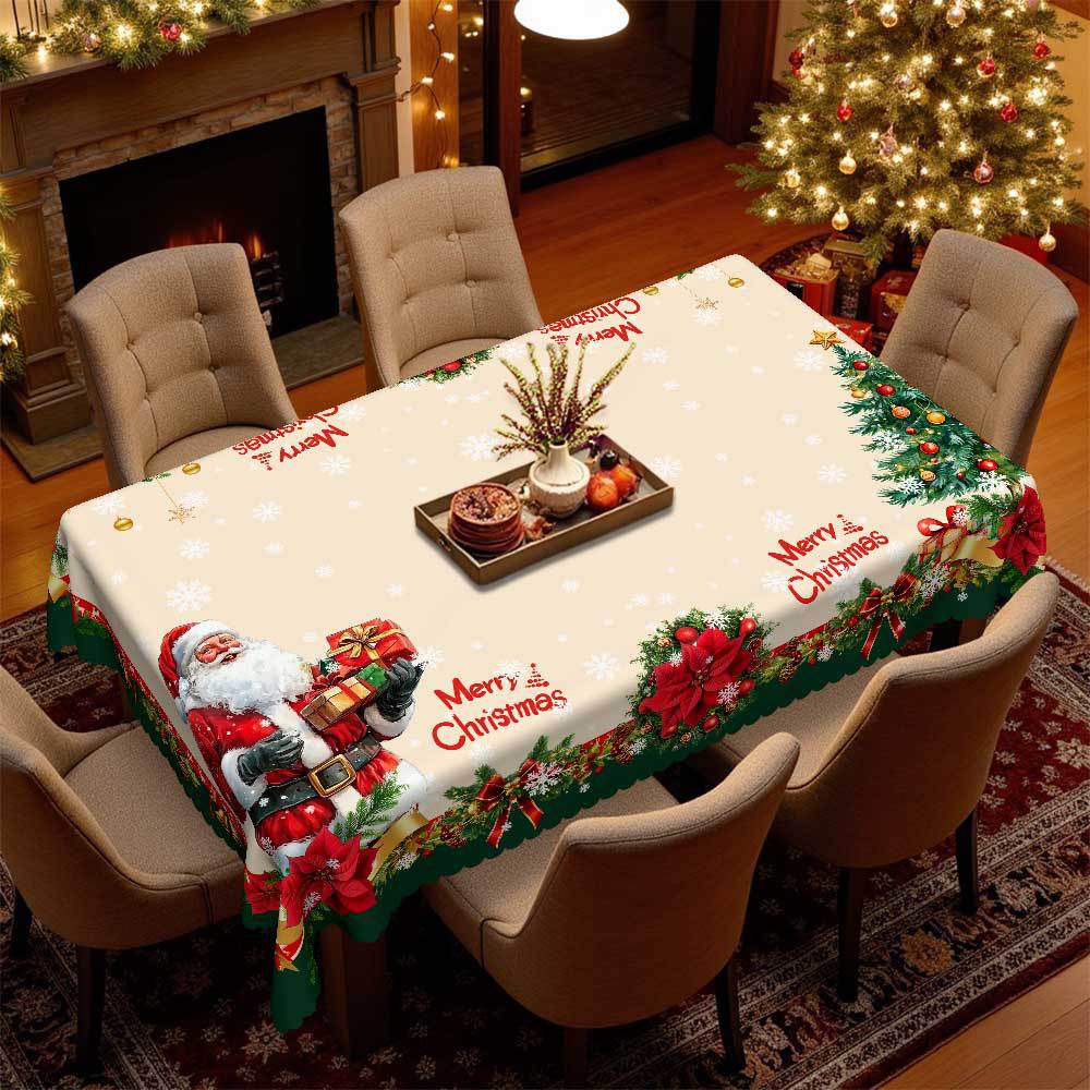 Weihnachtstischdecke, Rote Beere Grüner Kiefernzweig Schneeflocke Schleife Kranz, Europäische Weihnachtsdekoration Runde Tischdecke