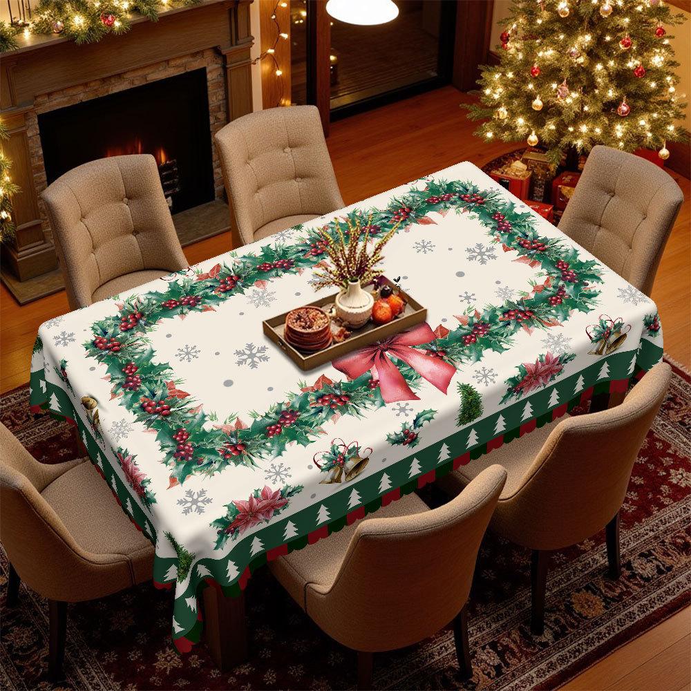 Christmas Party Tablecloth, Waterproof, Snowflake Bell Print, Rectangular Coffee Table Cloth, Holiday Decorative Cloth