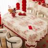 Wedding Festive Red Tablecloth Waterproof And Oil-Proof Leave-In Light Luxury High-End Coffee Table Tablecloth Cover Red Meal