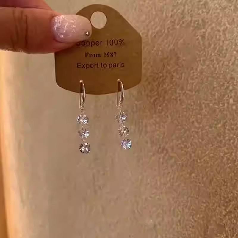 Exquisite Zircon Tassel Earrings: Sparkly, Versatile, Minimalist Design with Light Luxury Appeal.