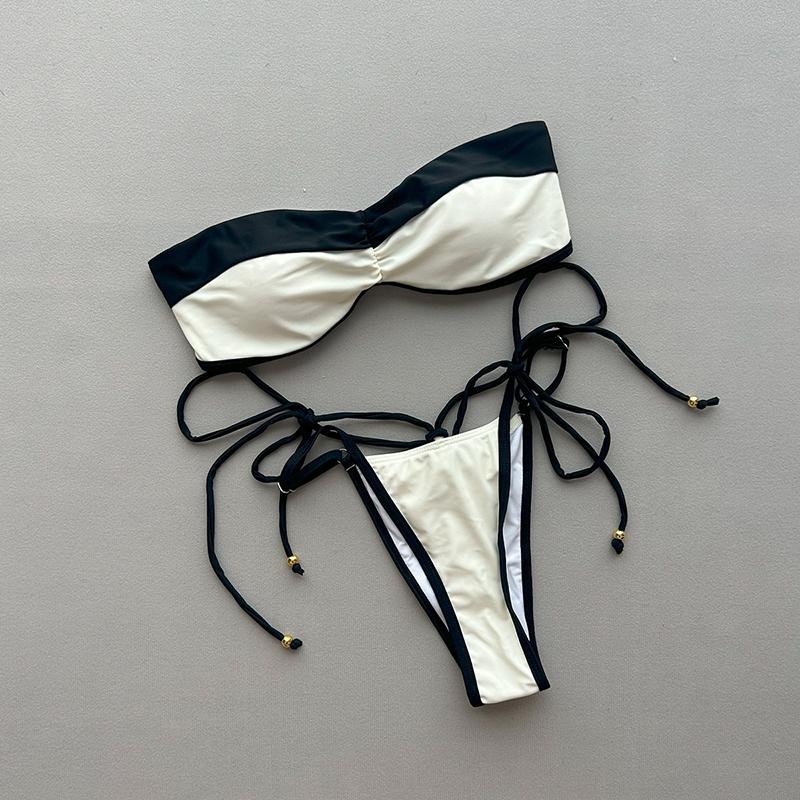 Neue Sexy Bandeau Bikini Sets Badeanzug Für Frauen Sexy Träger-Badebekleidung Weiblich Patchwork Badeanzug Strandbekleidung Schwimmanzug