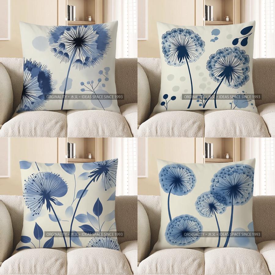 Home Decor Blue Dandelion Pattern Decorative Throw Pillow Pattern Cushion Cover Suitable for Sofa Bedroom Car Pillow Cover