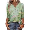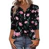 Damen Modisch Lässig Retro Floral Print V-Ausschnitt Knopfleiste Dreiviertelärmel T-Shirt Top