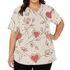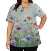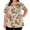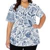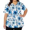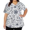 Modisches Damen-Arbeitsoberteil mit V-Ausschnitt und kurzen Ärmeln, mit doppelseitigen Schlitzen und Taschen, mit einem Retro-Blumendruck.