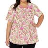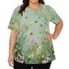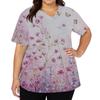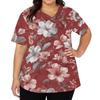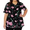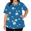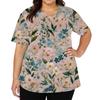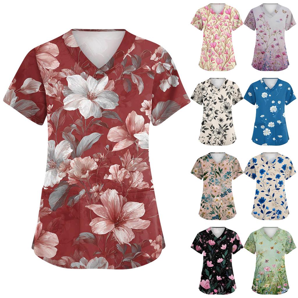 Modisches Damen-Arbeitsoberteil mit V-Ausschnitt und kurzen Ärmeln, mit doppelseitigen Schlitzen und Taschen, mit einem Retro-Blumendruck.