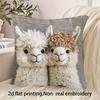 Alpaca Pillow Cover Imitation Embroidery Alpaca Pattern Pillowcase Rustic Throw Pillow Cover for Sofa Couch Bedroom Living Room Car Decor