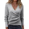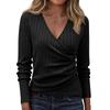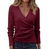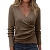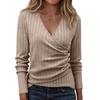 Women's Fashion Casual Long-Sleeve V-Neck Solid-Color Pullover Knit Top