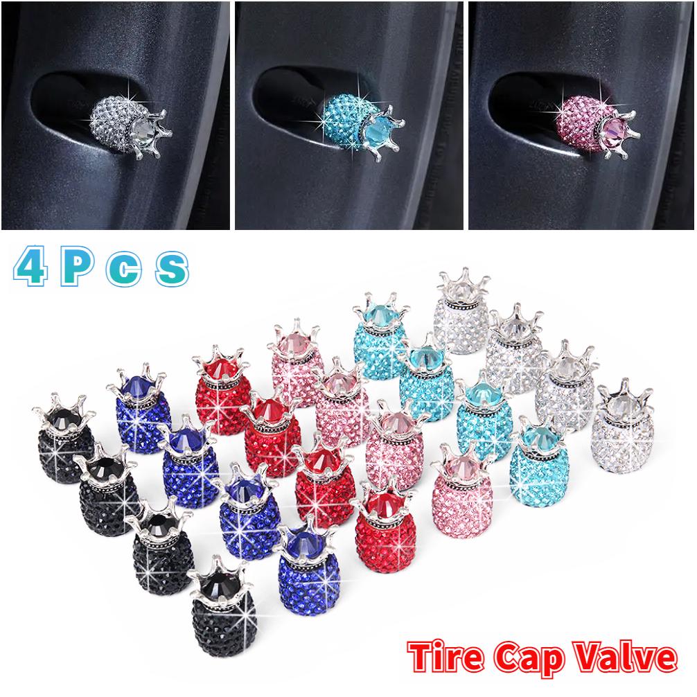4 Stück Diamant Auto Reifenventilkappen Glänzend Staubdicht Radventilabdeckung Fahrzeug Bling Kristallventilkappe Auto Styling Zubehör