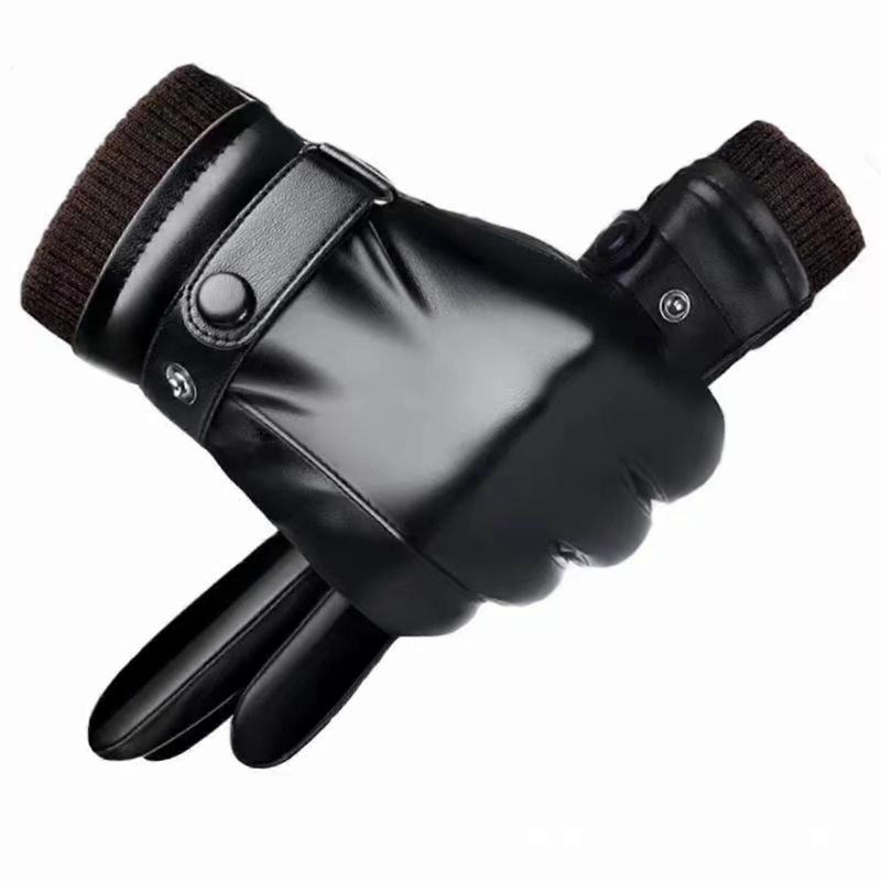 Leather Gloves Touch Screen Compatible Adjustable Fit Black Leather Soft Cashmere Lining Winter Warmth Christmas Gift