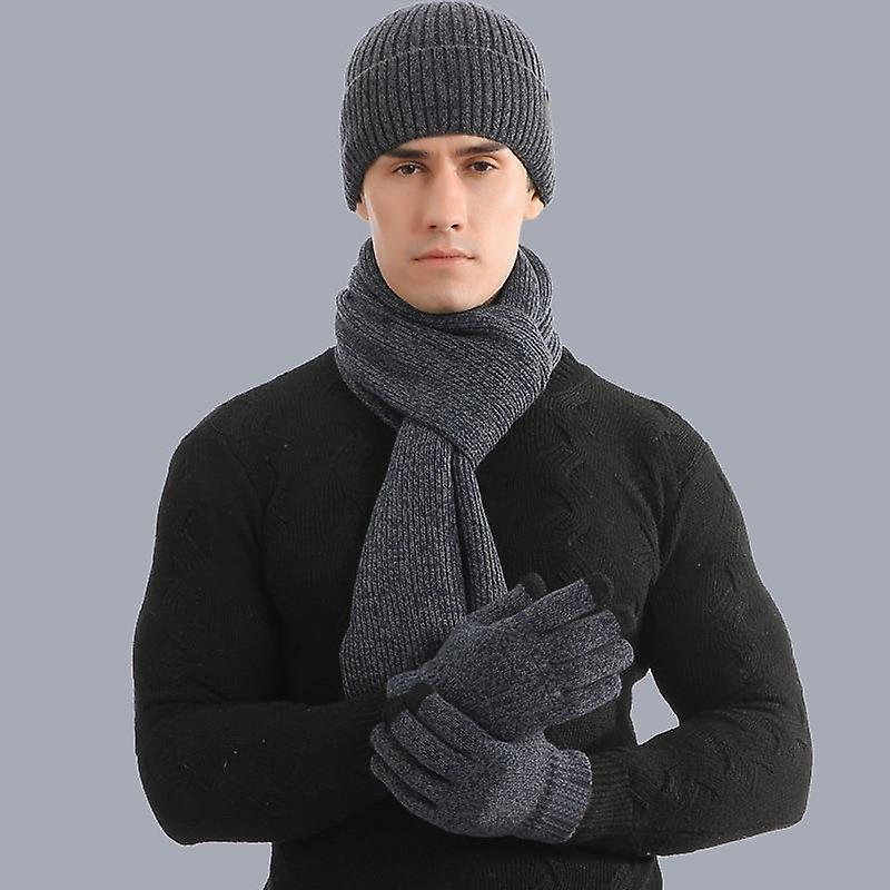 Winter Warme Herren Wollmütze Schal Handschuhe Set
