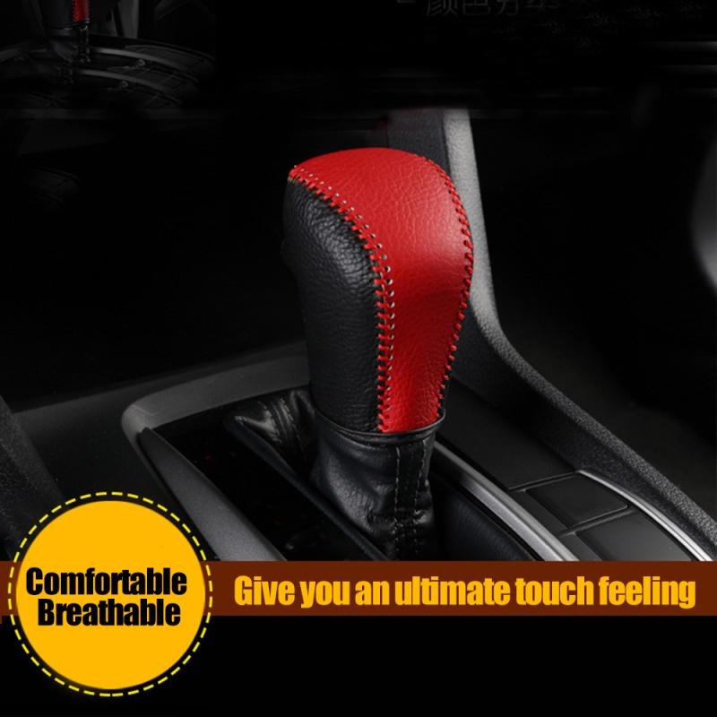Car Gear Shift Knob Cover Leather Hand Sewing Gear Shift Knob Cover for Honda Civic 2016-2018